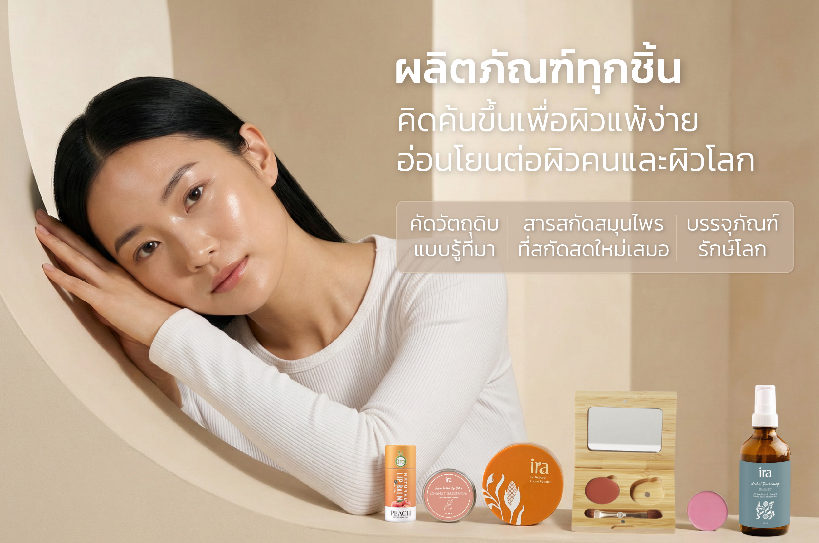 เรายังทำงานกับผู้คน ชุมชน และเกษตรกรโดยการเลือกใช้ส่วนผสมภายในประเทศ นอกจากจะเป็นการลดคาร์บอนฟุ๊ตปริ้น ยังช่วยสนับสนุนเกษตรกรไทยได้อีกด้วย อาทิ เมล็ดกาแฟจากดอยแม่ลัว น้ำมันมะพร้าวจากจังหวัดสมุทรสาคม หรือการเลือกทำงานกับดีไซเนอร์ไทยในการออกแบบของสมนาคุณในไอรา ตั้งแต่กระเป๋าทอจากผ้าซาโอริโดยน้องๆเด็กพิเศษจากโรงเรียนโสต จังหวัดเชียงใหม่ ไปจนถึงกระเป๋าเครื่องสำอางจากกกโดยชุมชนเสม็ดงาม จังหวัดจันทบุรี นอกจากนั้นเรายังร่วมพัฒนาผลิตภัณฑ์เพื่อใช้สารสกัดจากพืชพรรณเกษตรกรไทยอีกด้วย